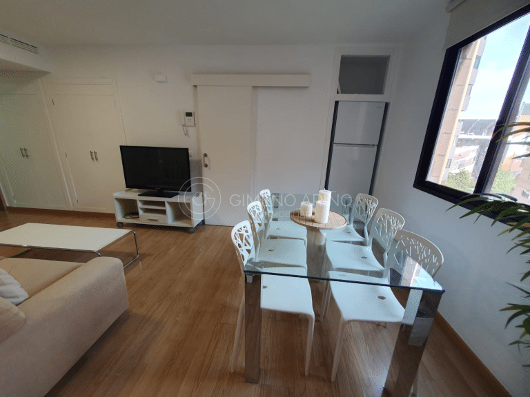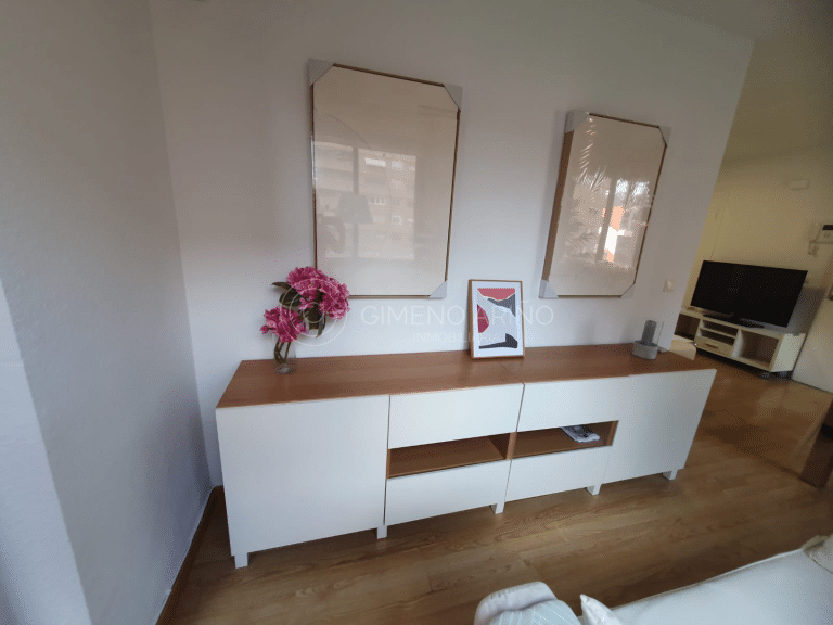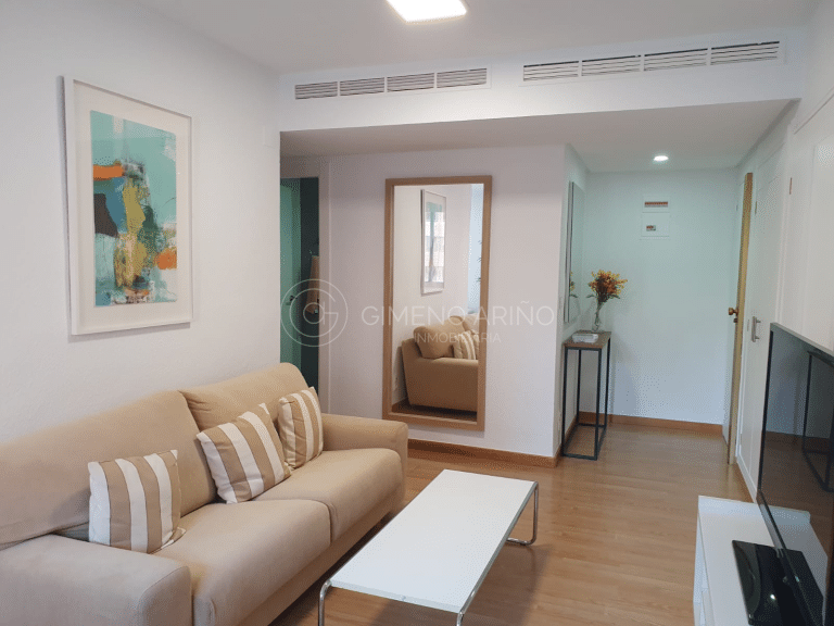 El piso se distribuye en un amplio y acogedor salón-comedor con acceso a una pequeña terraza, dos habitaciones dobles muy luminosas, ambas con camas de 1,35 m y balcones exteriores, un baño completo, cocina independiente totalmente equipada y galería. El estado de conservación es excelente, ya que ha sido reformado recientemente. Se entrega completamente amueblado, con mobiliario moderno, electrodomésticos nuevos, cinco armarios de gran capacidad, suelos de parquet y aire acondicionado frío/calor por splits en las estancias principales.